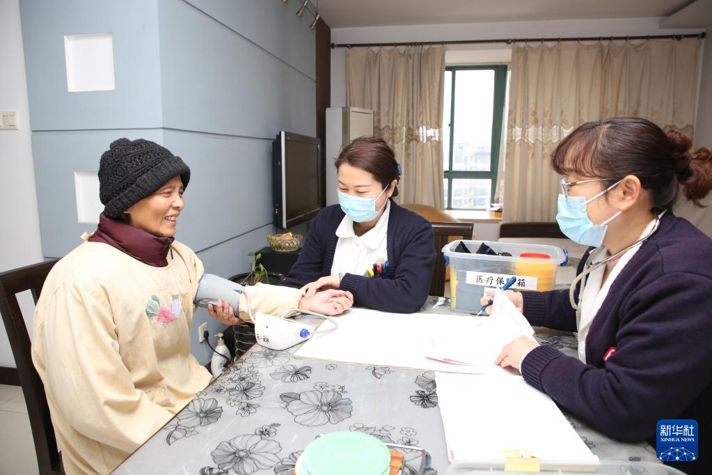 2月1日,常州市钟楼区荷花池街道社区卫生服务中心的医护人员上门为辖区内的老人进行健康检查。