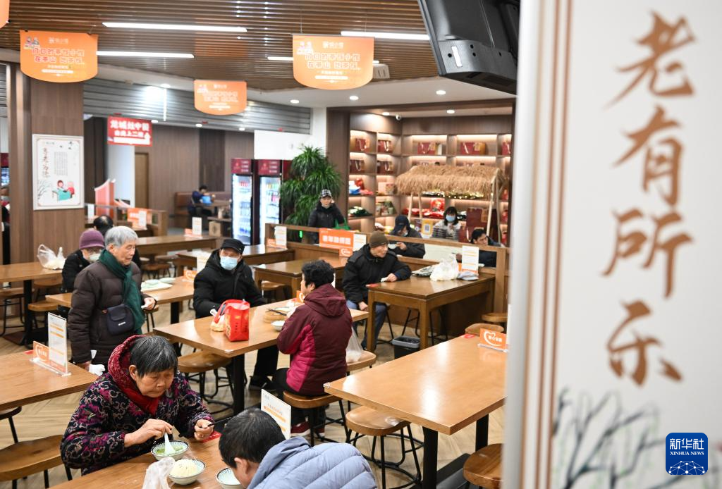 在常州市天宁区茶山街道“茶饭小馆”社区食堂,老人在用餐(1月9日摄)。