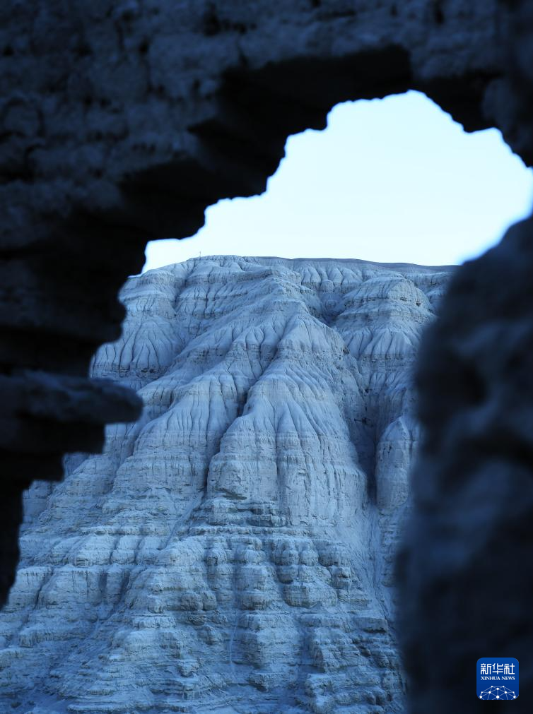 这是透过古格王国遗址残垣拍摄的土林(1月30日摄)。