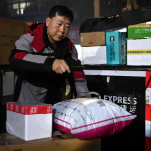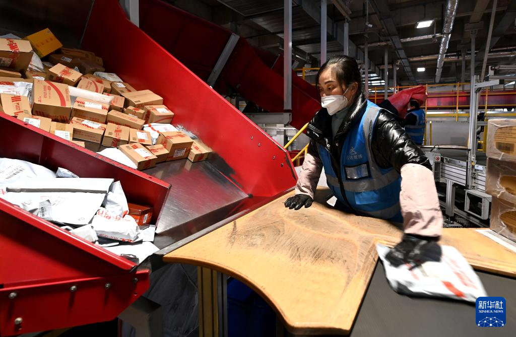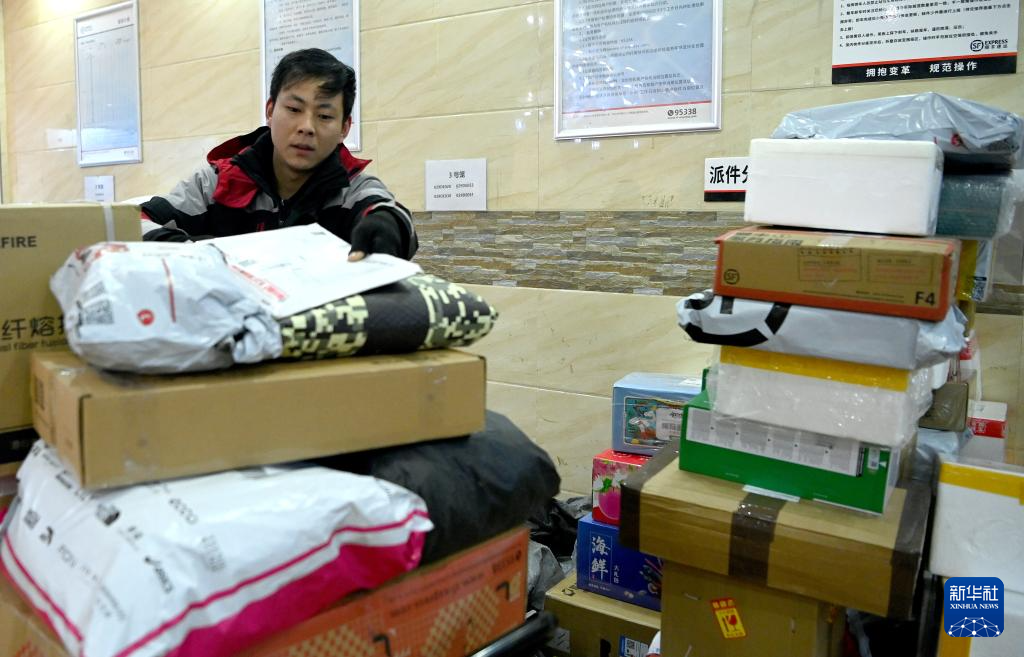 2月1日,西安市测绘路顺丰快递站点的工作人员在整理快件。