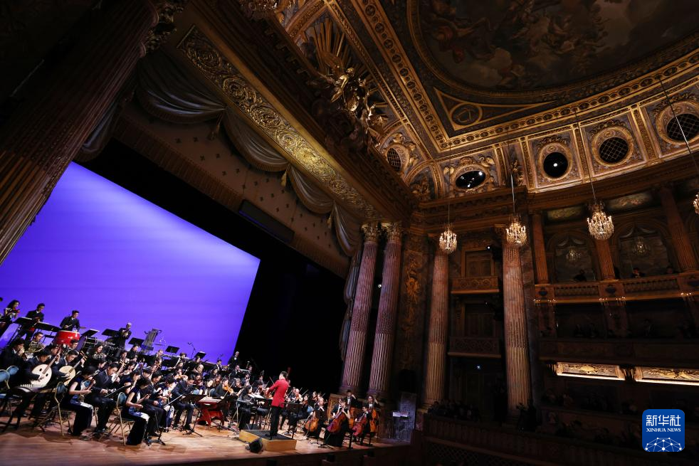 1月31日,两国音乐家在法国巴黎凡尔赛宫皇家歌剧院举行的音乐会上演出。