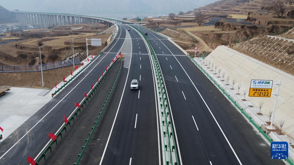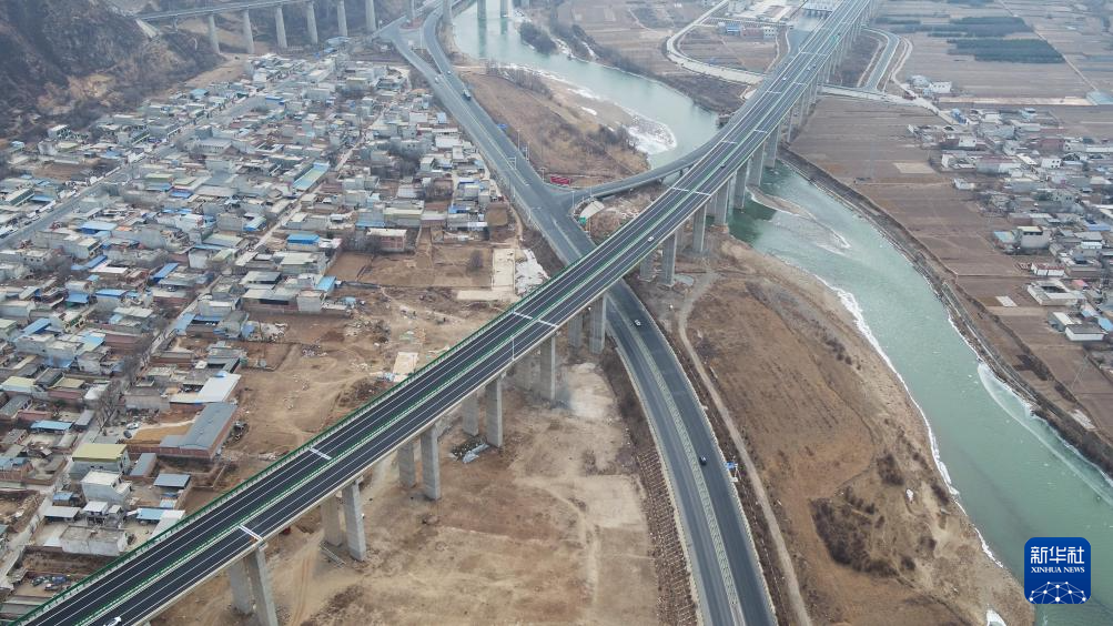 1月31日,汽车在G75兰海高速甘肃岷县境内行驶(无人机照片)。