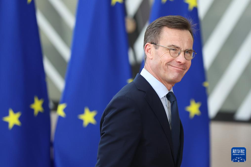 2月1日,在比利时布鲁塞尔,瑞典首相克里斯特松抵达欧盟特别峰会会场。