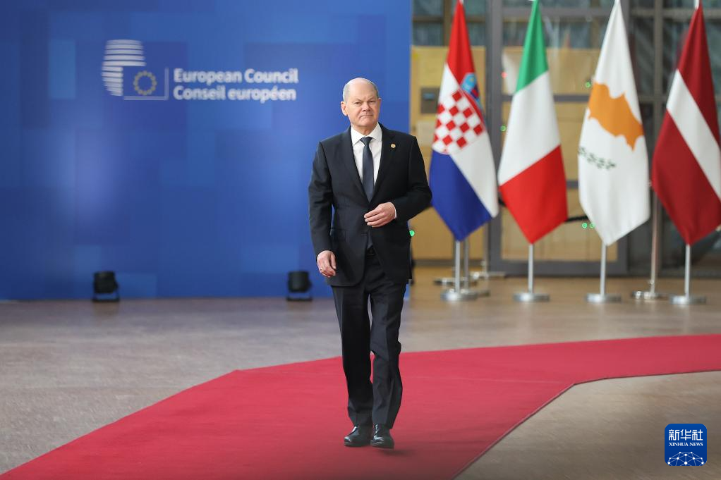 2月1日,在比利时布鲁塞尔,德国总理朔尔茨抵达欧盟特别峰会会场。