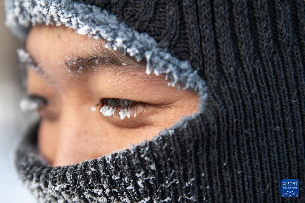 1月31日,盘古线路车间的工人鞠文浩的眼睫毛结上了冰霜。