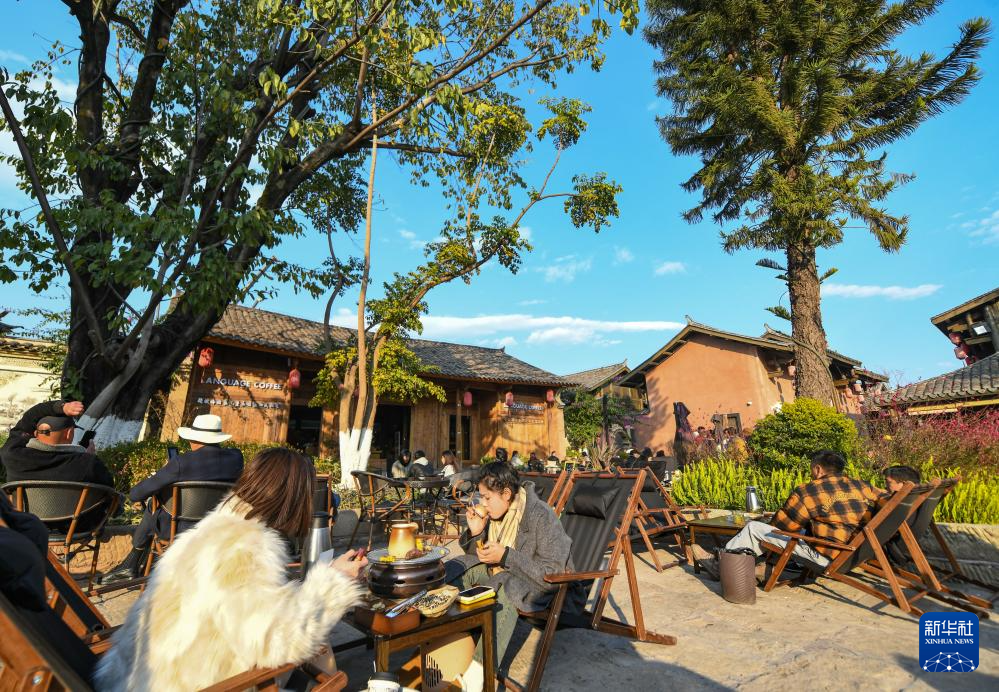 1月30日,游客在建昌古城内一家咖啡馆小憩。