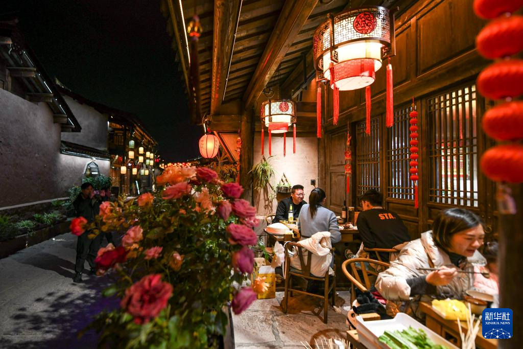 1月30日,游客在建昌古城内用餐。