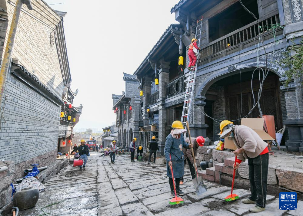 1月30日,工人在建昌古城进行修缮改造施工。