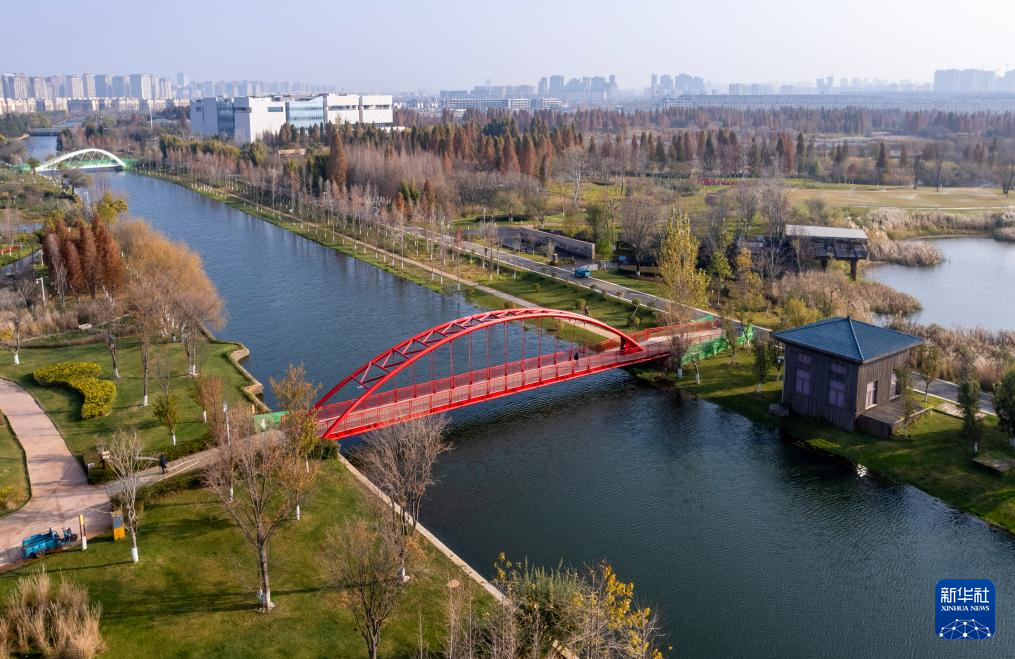 这是2月2日拍摄的昆明西亮塘湿地公园一景(无人机照片)。