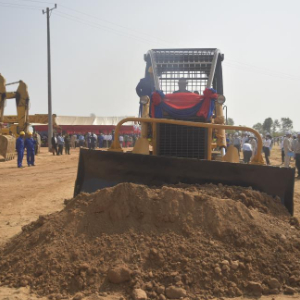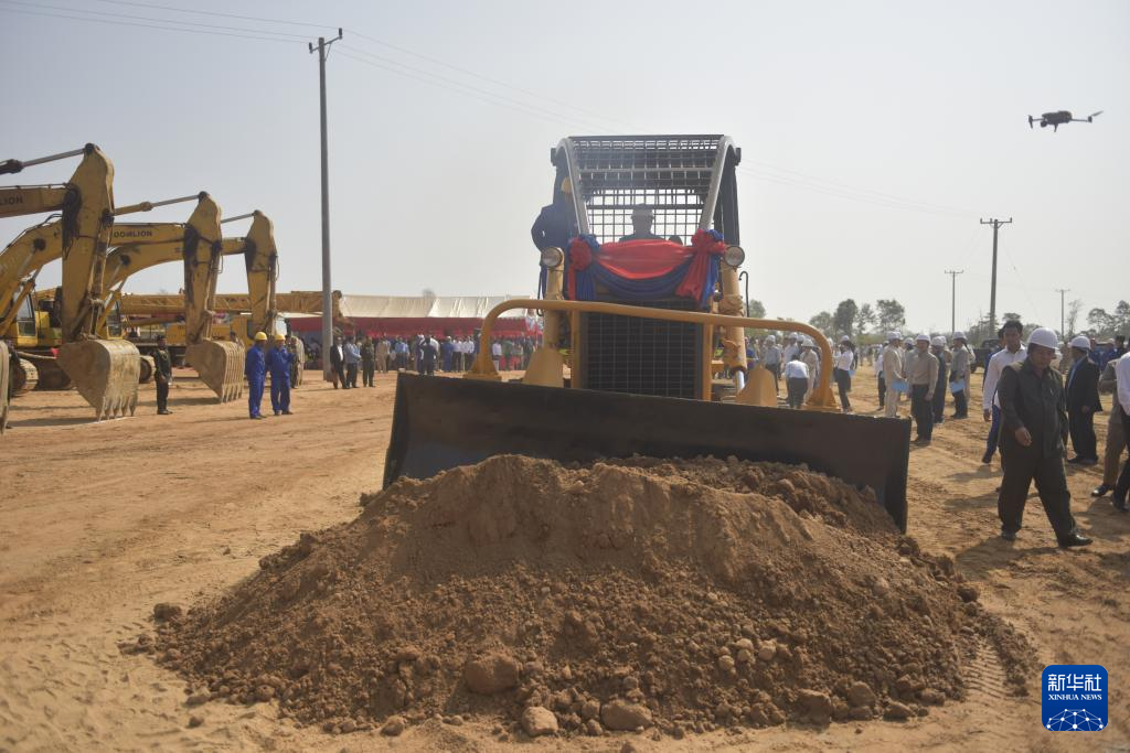 这是2月1日在柬埔寨磅通省拍摄的当甘贝水库发展项目开工仪式现场。