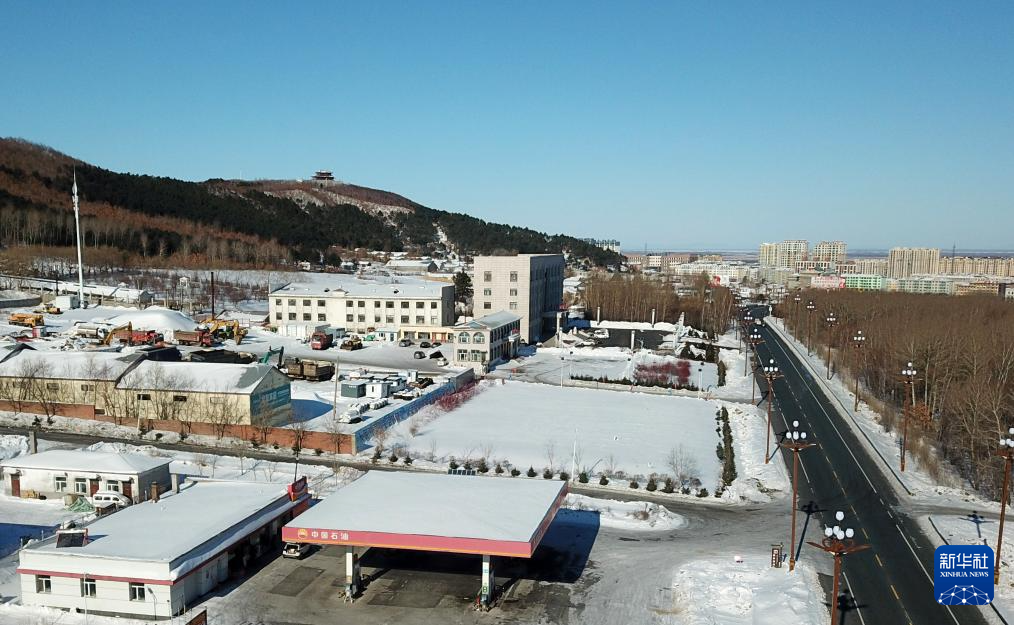 2月2日拍摄的中石油黑龙江抚远东方第一加油站(无人机照片)。