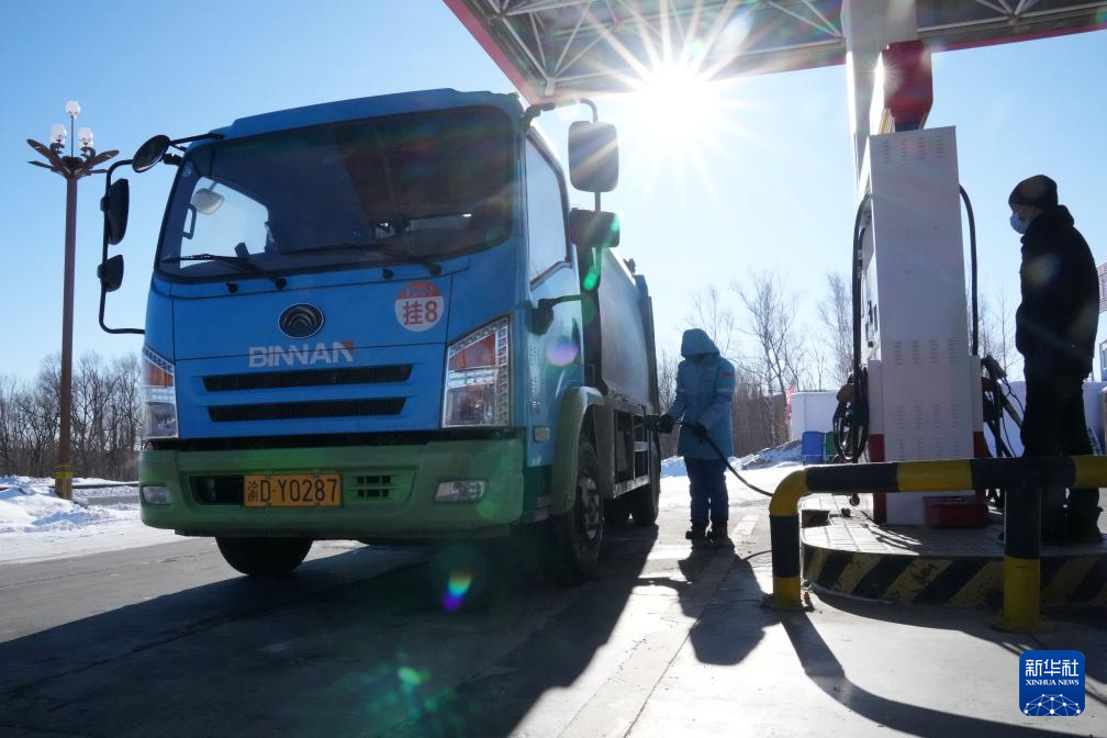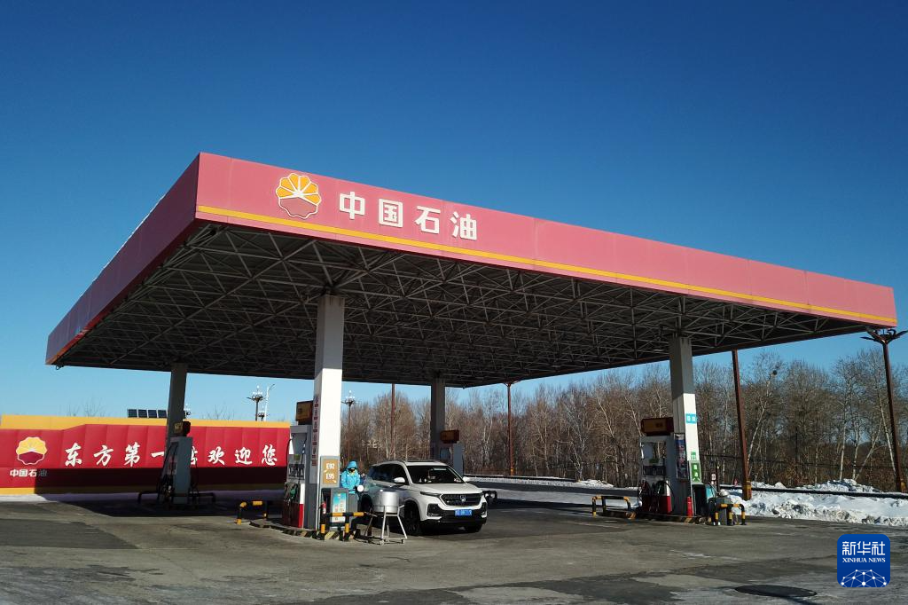 2月2日,中石油黑龙江抚远东方第一加油站的员工给车辆加油。