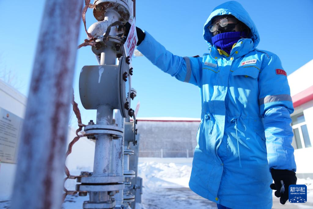 2月2日,中石油黑龙江抚远东方第一加油站的员工在站内进行安全巡检。