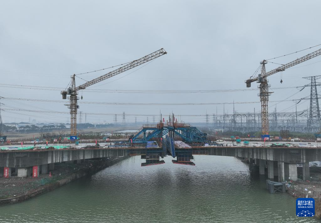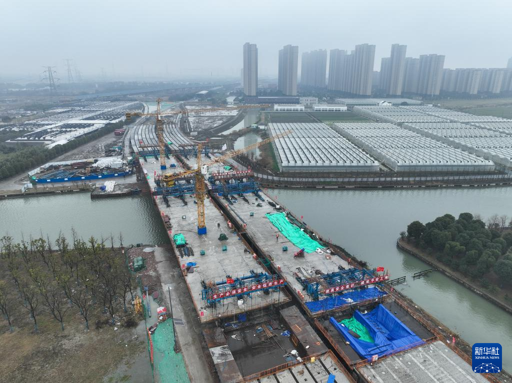 2月3日拍摄的苏州强胜路对接312国道工程施工现场(无人机照片)。