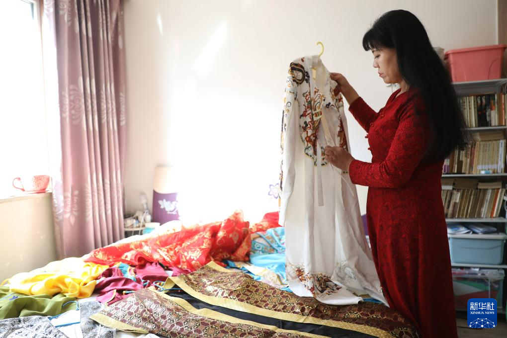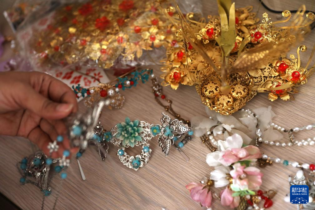 2月1日,王艳娟在自己家中整理演出用的首饰。