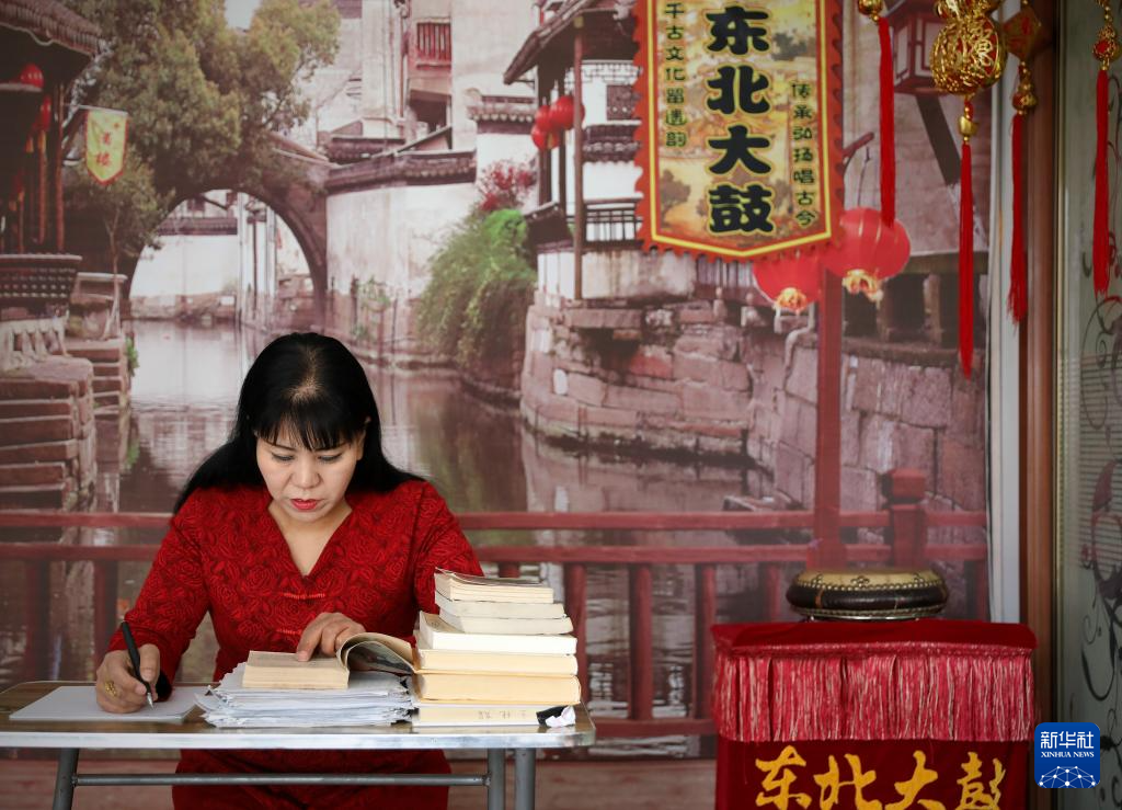 2月1日,王艳娟在自己家中整理东北大鼓书唱词。