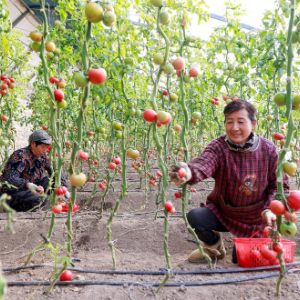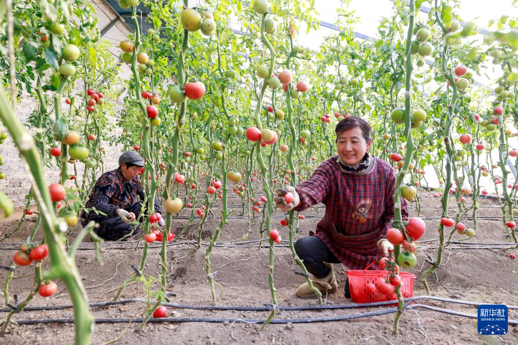 2月4日,河北省唐山市丰南区岔河镇大荣各庄村农民在大棚里采收西红柿。