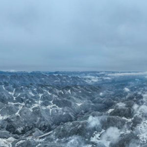 这是2月3日在重庆市巫溪县文峰镇一带拍摄的雪后风光(无人机全景照片)。