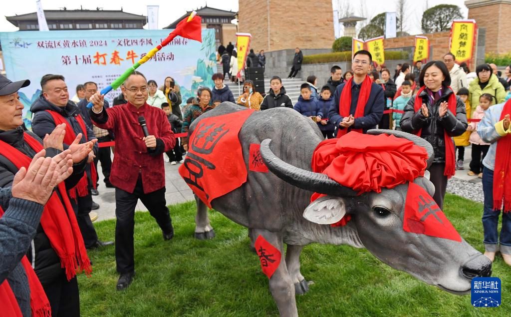 2月4日,四川省成都市双流区黄水镇居民举行“打春牛”活动,祈求国泰民安。