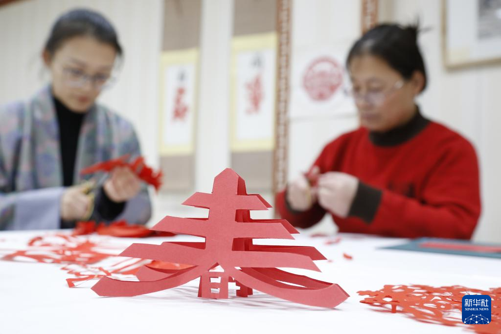 2月4日,剪纸爱好者在河北省邢台市广宗县图书馆剪纸迎立春。