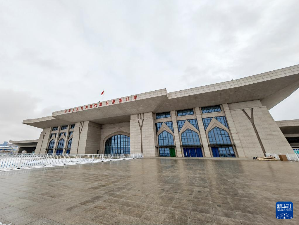 这是2月2日拍摄的中国新疆霍尔果斯公路口岸第六代国门。
