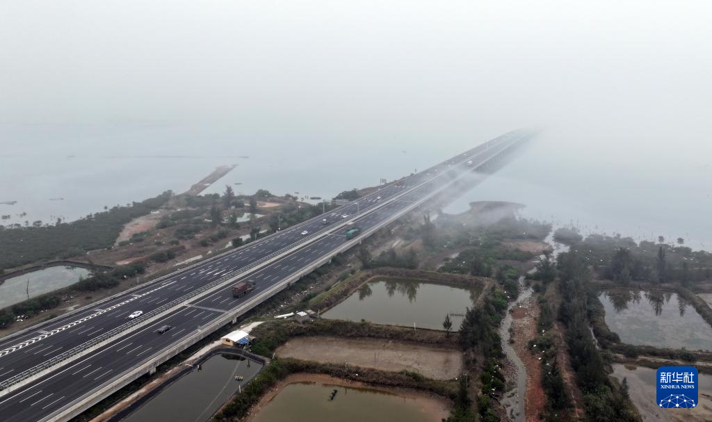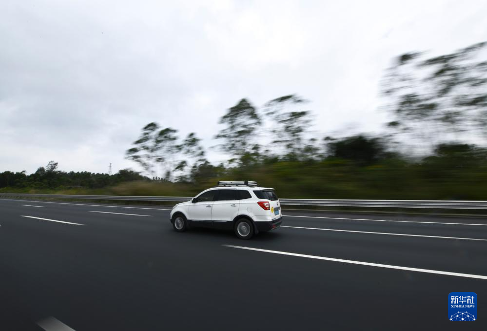 2024年2月2日,周克兵驾车行驶在广西北海市境内的高速公路上(无人机照片)。