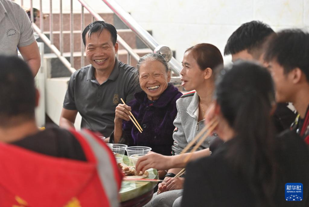 2024年2月3日,在广西靖西市禄峒镇思侯村,周克兵和家人一起吃午饭。