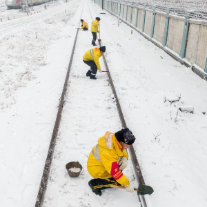 近日,湖北多地遭遇低温雨雪冰冻天气,中国铁路武汉局集团有限公司组织工人加紧对铁路设备进行道岔积雪清扫、接触网除冰作业,同时做好旅客疏导、应急值守工作,加大线路设备巡检范围,以应对雨雪天气对铁路带来的不利影响。
