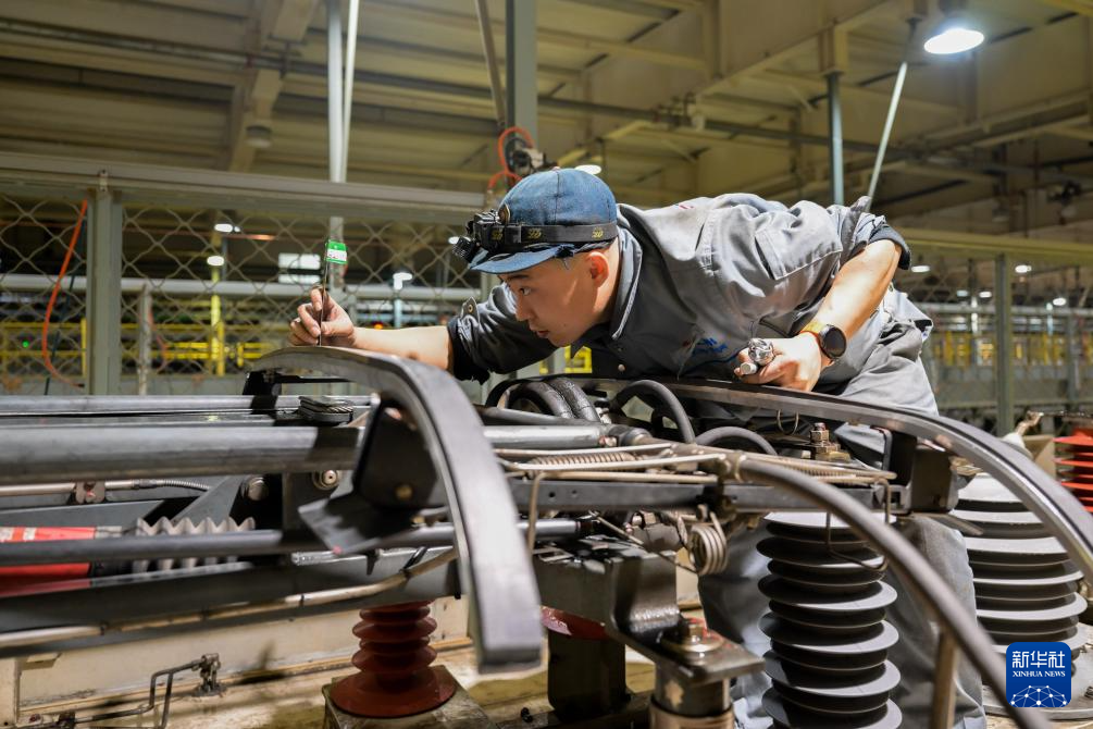 2月4日,包头车辆段呼和浩特东动车所的工作人员进行受电弓检修作业。