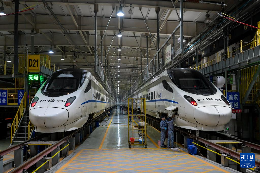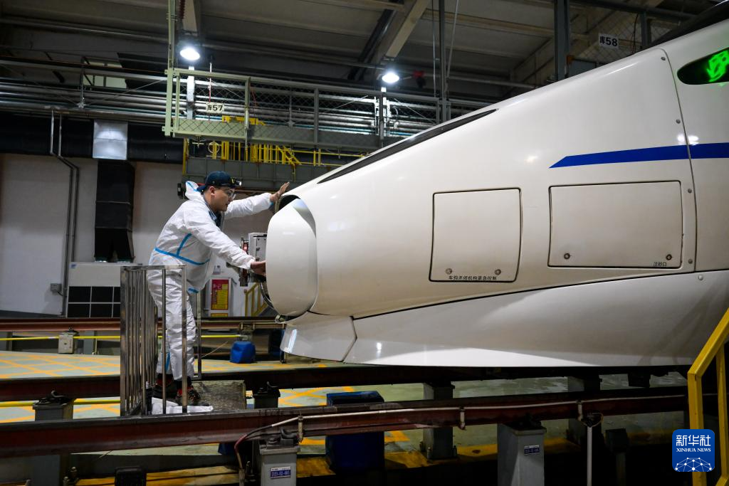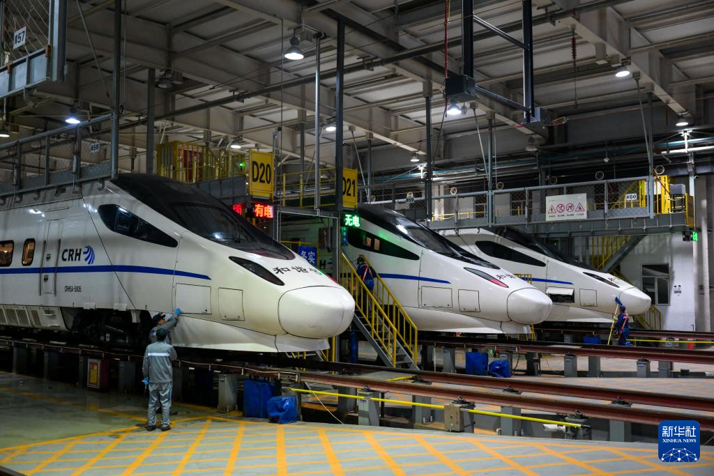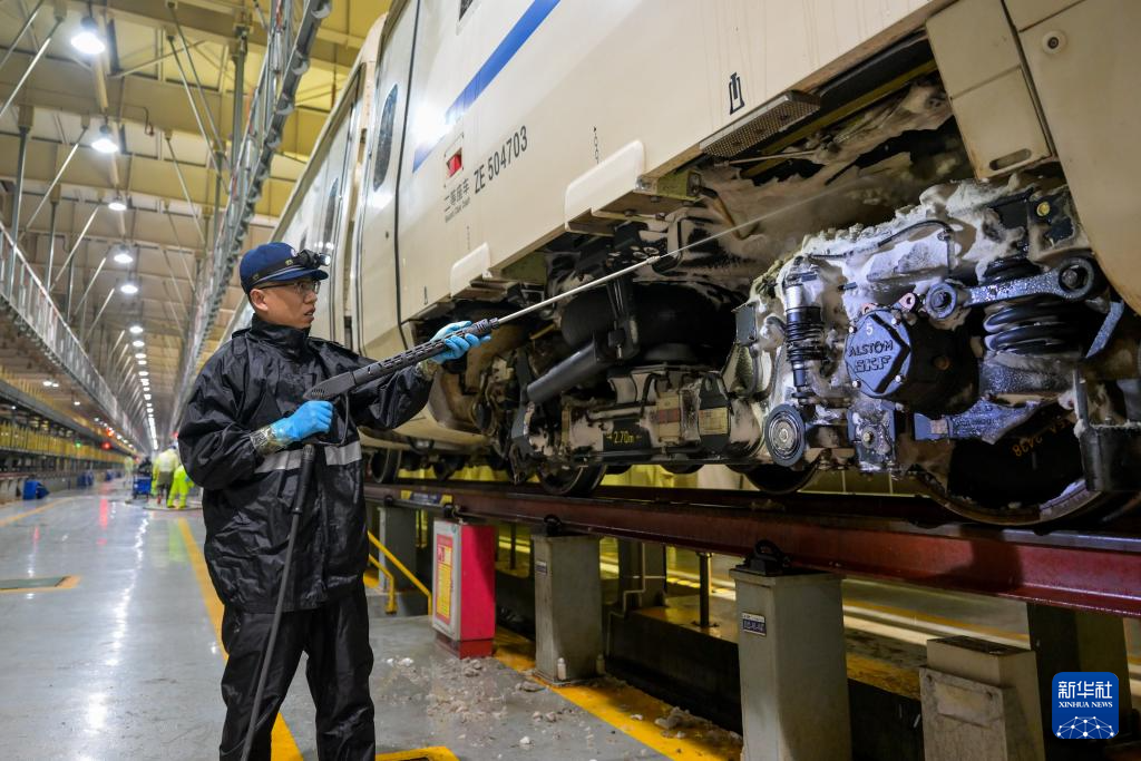 春运期间,中国铁路呼和浩特局集团有限公司包头车辆段呼和浩特东动车所的工作人员积极开展动车组列车检查、维修等工作,确保列车状态良好,保障旅客出行安全。