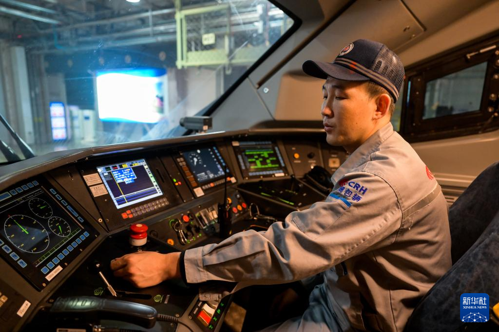 2月4日,包头车辆段呼和浩特东动车所的工作人员进行司机室功能试验作业。