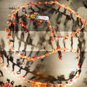 2月5日,舞龙队在丰江周村一处广场表演(无人机照片)。