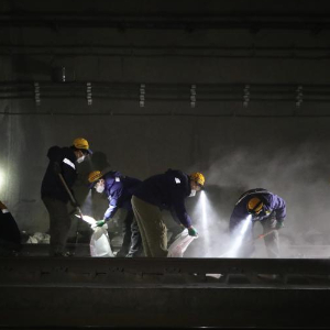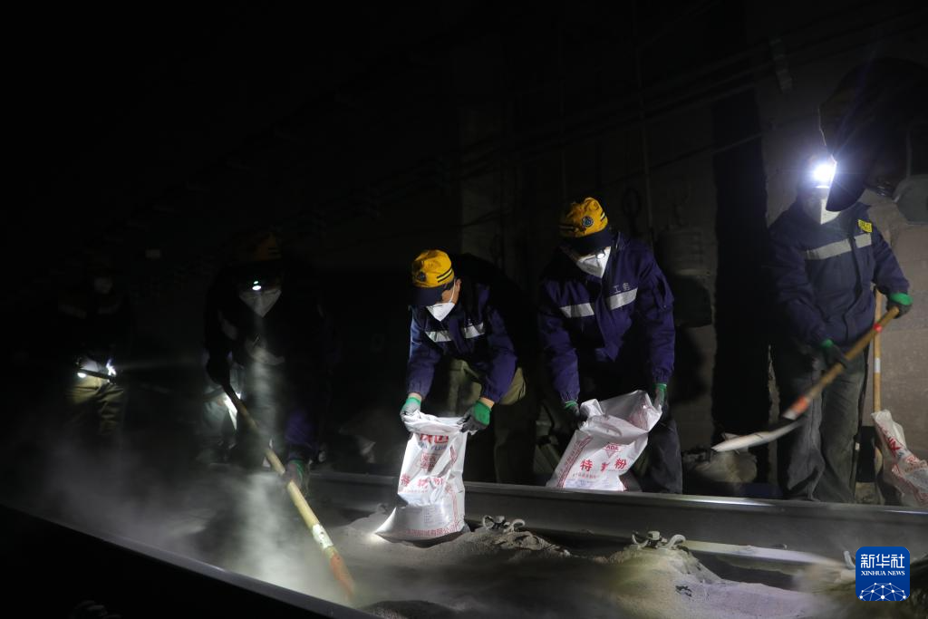 春运期间,兰州北桥隧养修工区的清沙工人要不定期进行清沙作业,保证列车运行安全。由于白天货运列车运输密集,“天窗”施工大都在半夜进行。每次作业完成,他们每个人身上、脸上都沾满灰尘。“虽然我们的工作又脏又累,但看着一辆辆货运列车平稳安全通过我们所工作的隧道,我们感到很自豪。”兰州北桥隧养修工区工长王健凯说。