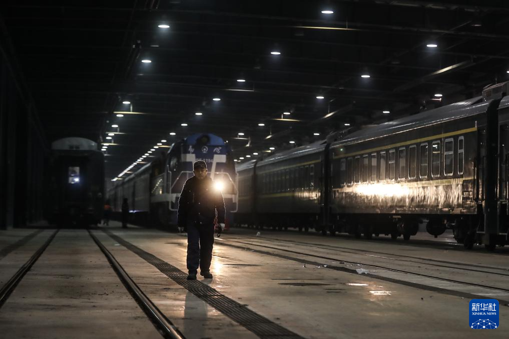 凌晨时分,一列普速列车缓缓驶入沈阳车辆段沈阳北整备库,待库检作业人员设置好脱轨器后,沈阳北运用车间车电二班的职工拿好工具,走进列车车厢开始工作。繁忙的春运加上寒冷天气,给他们的夜间作业增添了极大的难度。