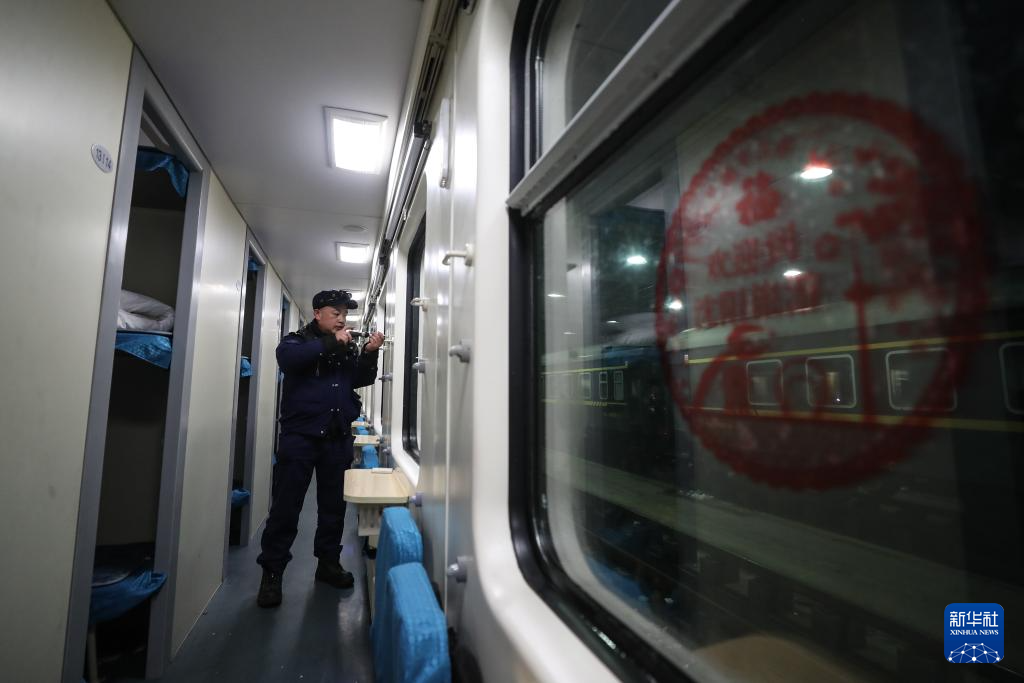 2月5日,田鹤在一列普速列车内进行检修工作。