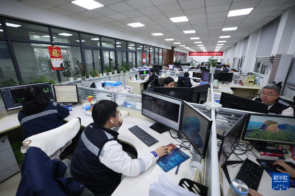 2月6日,技术人员在舟山中远海运重工的技术中心工作。
