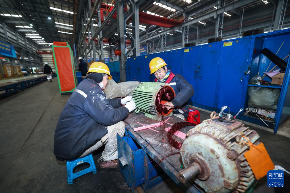 2月6日,在舟山中远海运重工的机电车间内,工人在维修船用设备。