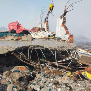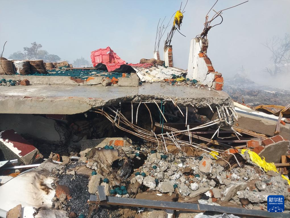 这是2月6日在印度中央邦赫尔达地区拍摄的鞭炮厂爆炸后的建筑废墟。