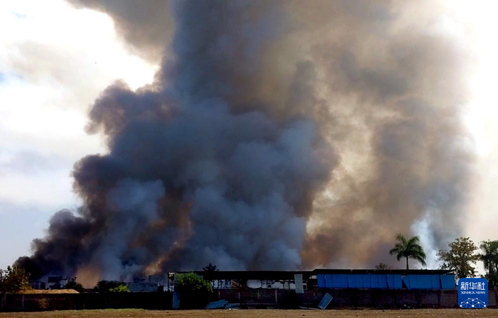 2月6日,在印度中央邦赫尔达地区,发生爆炸的鞭炮厂冒出浓烟。