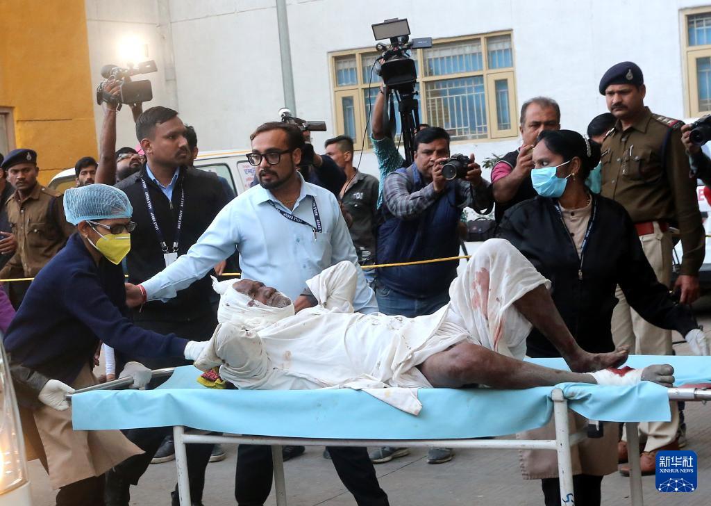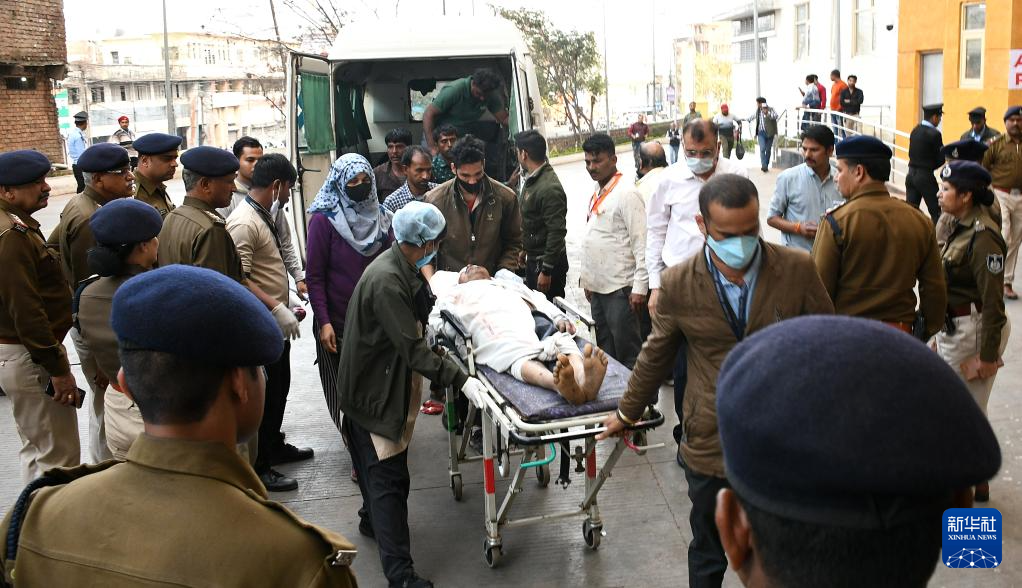 2月6日,在印度中央邦赫尔达地区,一名在鞭炮厂爆炸事故中受伤的男子被送往医院。