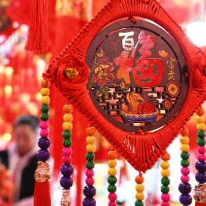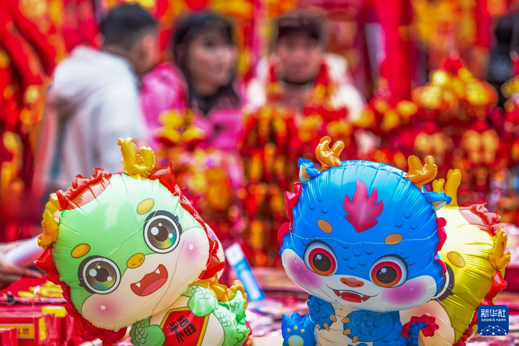 2月7日,居民在重庆市南川区鼓楼广场年货市场选购节庆饰品。