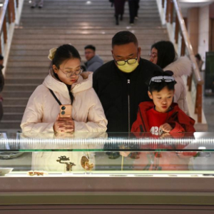 2月7日,游客在山西博物院参观。