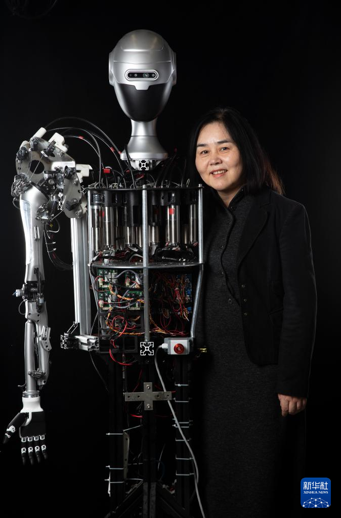 人形机器人攻关团队在中国科学院院士、多模态人工智能系统全国重点实验室主任乔红和人形机器人(1月31日摄)。