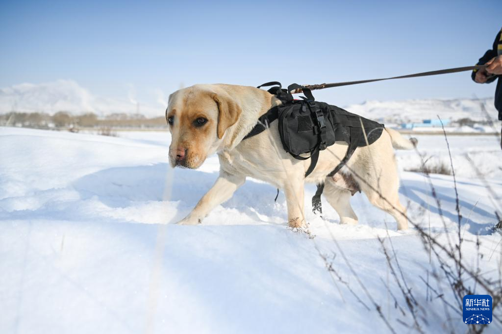 2月7日,刘贵兵(前)牵着“大黄”巡护检查。