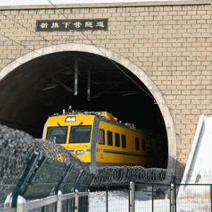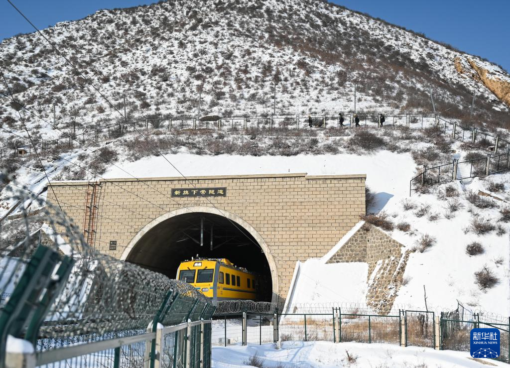 2月7日,刘贵兵和同事在隧道顶部防护栏处进行巡护检查。