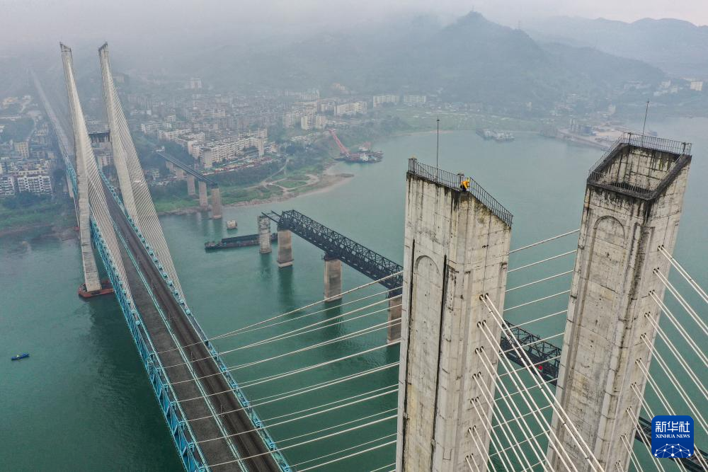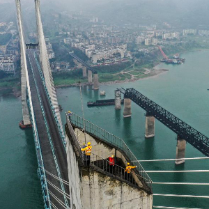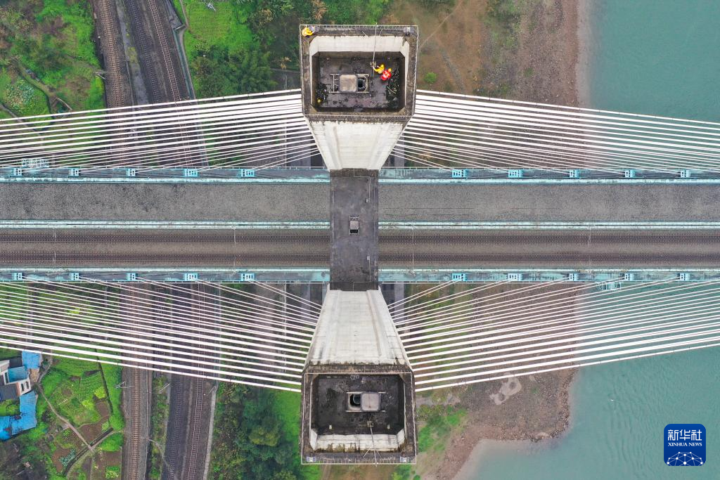 渝贵铁路线上的新白沙沱长江特大桥是世界首座双层铁路钢桁梁斜拉桥。重庆工务段重庆桥路车间担负着这座桥梁的检查任务,桥隧工人们日常需要在桥面、桥梁下部和主塔等位置开展设备检查作业。其中的桥梁主塔检查,是整个检查工作中难度最大、风险最高的项目,塔顶距桥面147米,工人需要沿螺旋式检查梯垂直攀爬约1000步,耗时近2小时登至塔顶开展检查作业。春运期间,工人们对大桥进行详细检查,保证大桥各项指标状态正常,为铁路平安运行贡献力量。