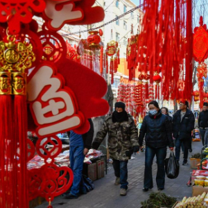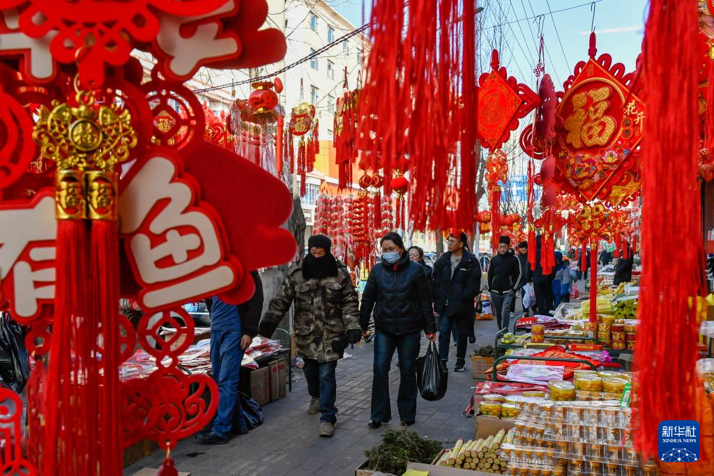 春节前夕,在甘肃省临夏州积石山县地震灾区安置点,当地群众在自家板房上挂灯笼,贴“福”字,炸油果果、麻花等年食,赶年集办年货,举办文艺演出,迎接龙年新春。