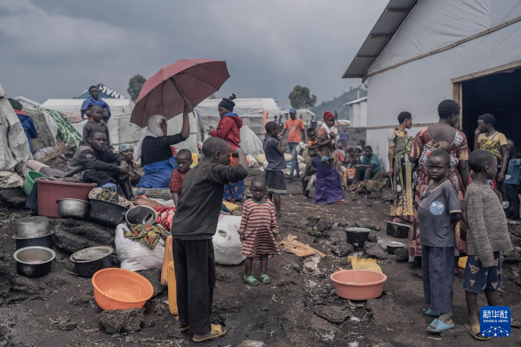 2月8日,人们在刚果(金)北基伍省首府戈马市郊的一座难民营内生活。