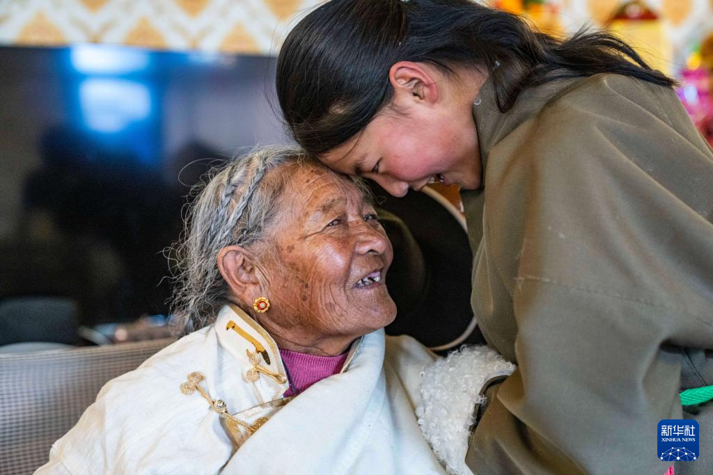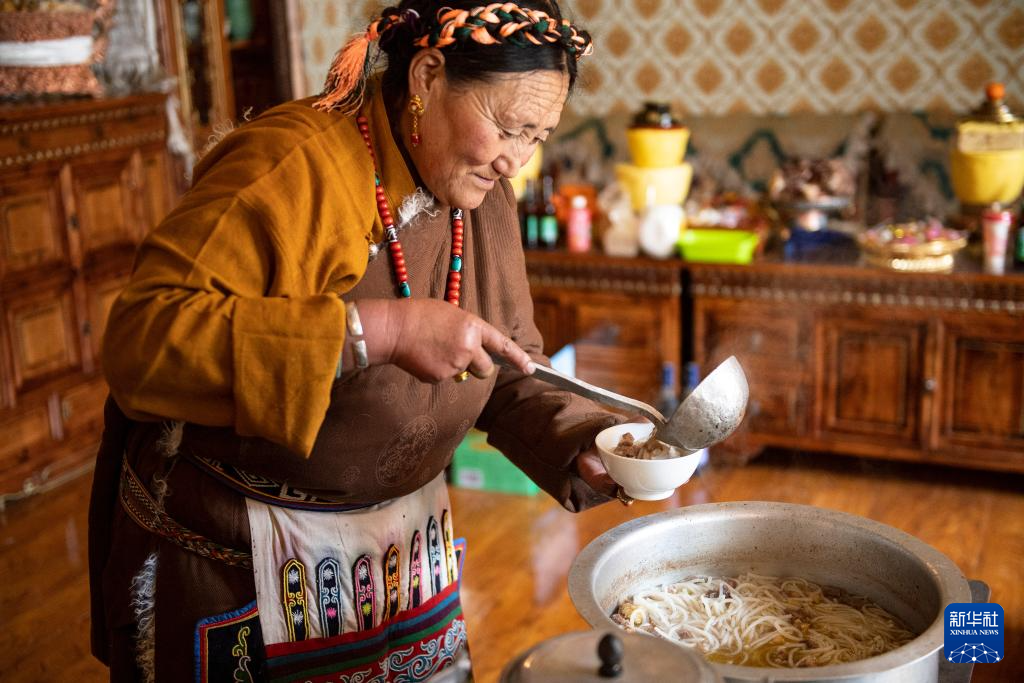 大年初一,斯曲旺姆的儿女们带着各自的小家庭来团聚,百余人的大家庭有几十人回来过年。坐在温暖的家中,斯曲旺姆的孩子们依次献上哈达、敬上青稞酒,被围坐在中间的她希望“这样的日子能久一点,再久一点……”