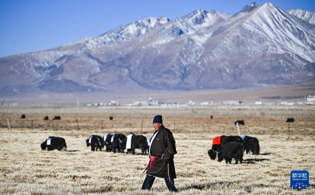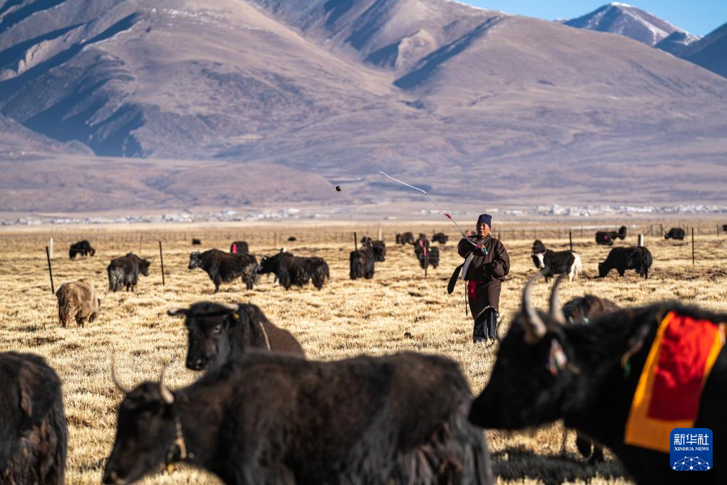 2月10日,斯曲旺姆的儿子索朗罗达将牦牛赶到牧场上。